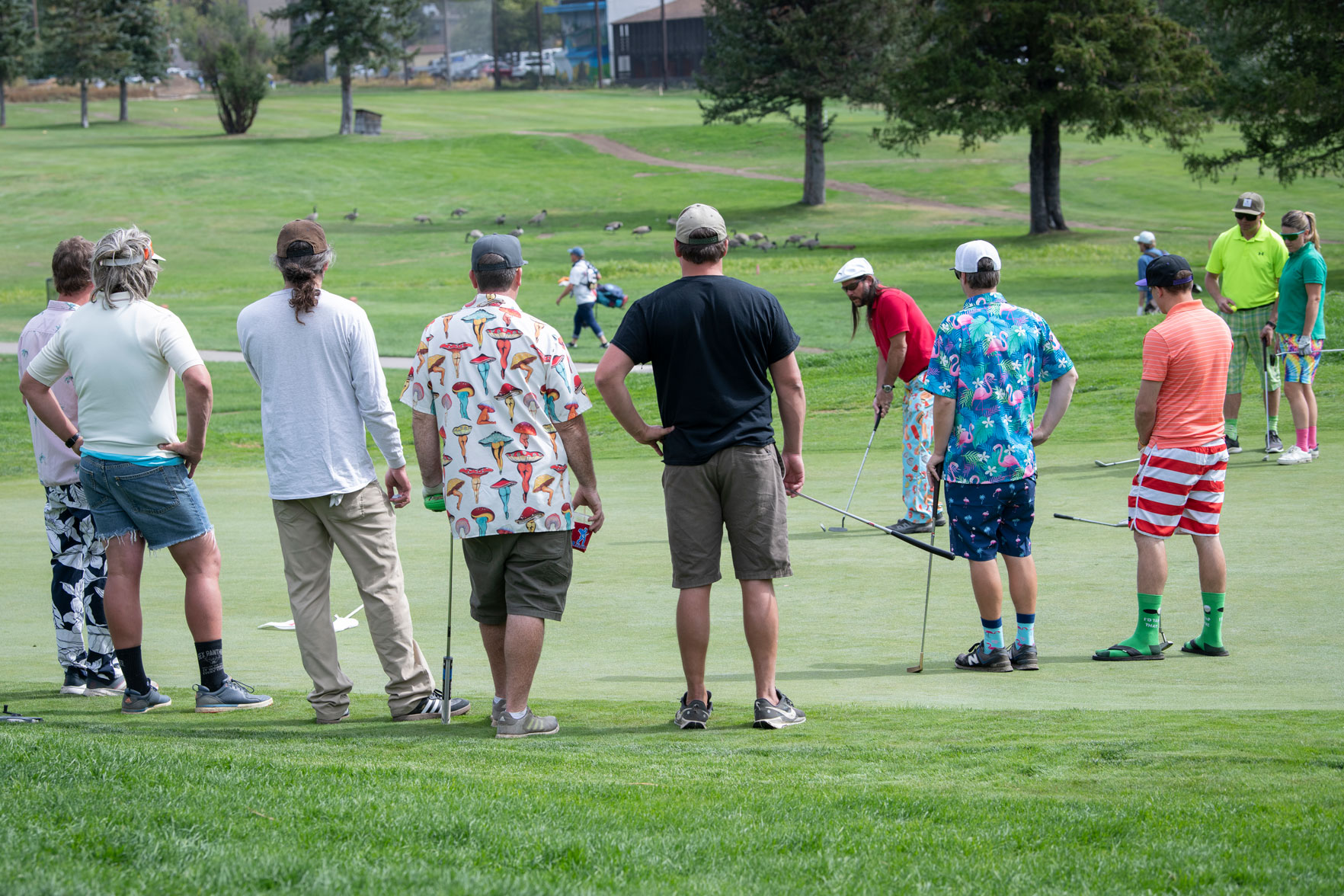 With a shotgun start at 9am, teams will play twice through 9 hilariously themed holes (for a total of 18 holes) in support of the Shane McConkey Foundation.